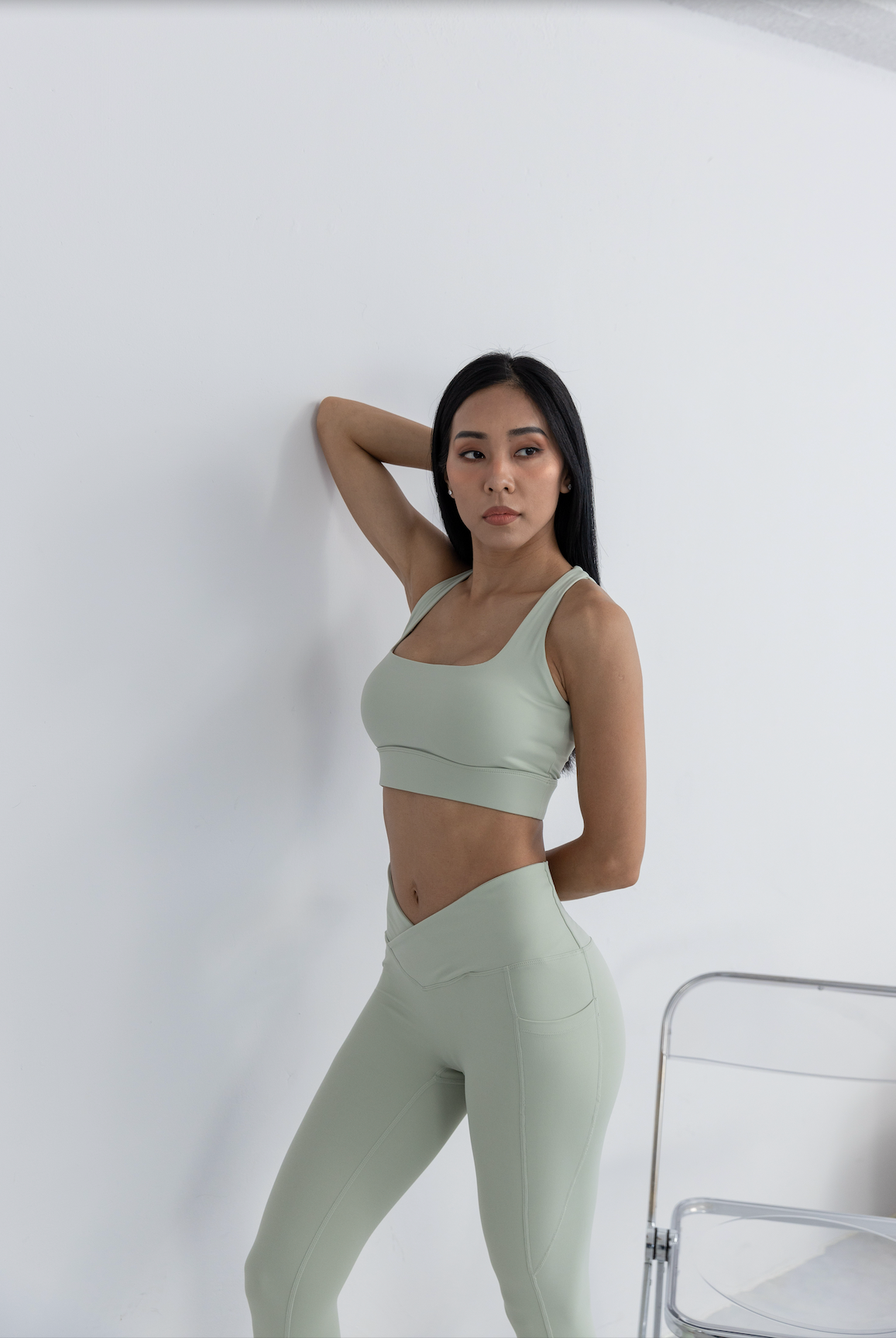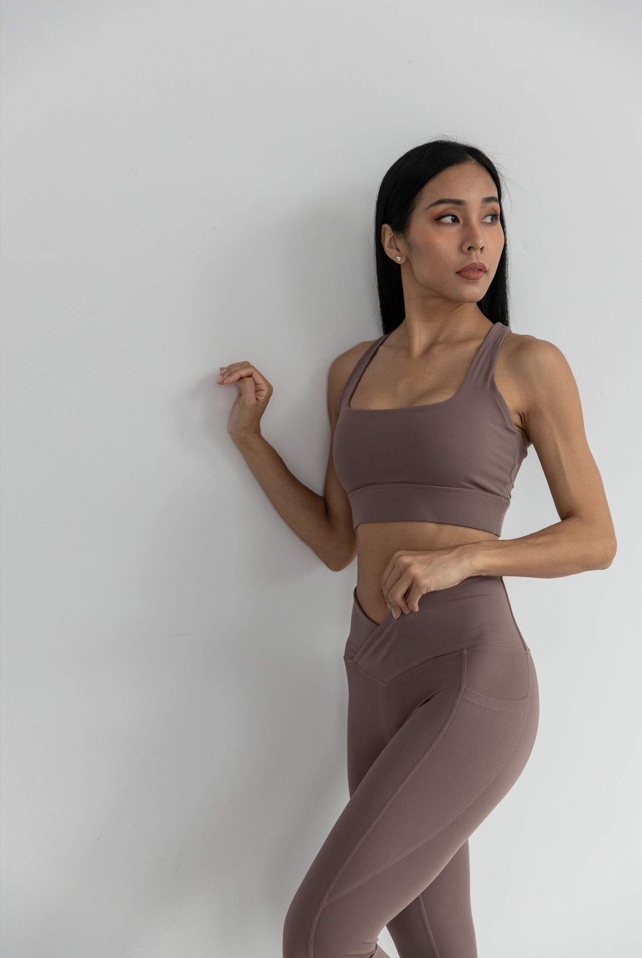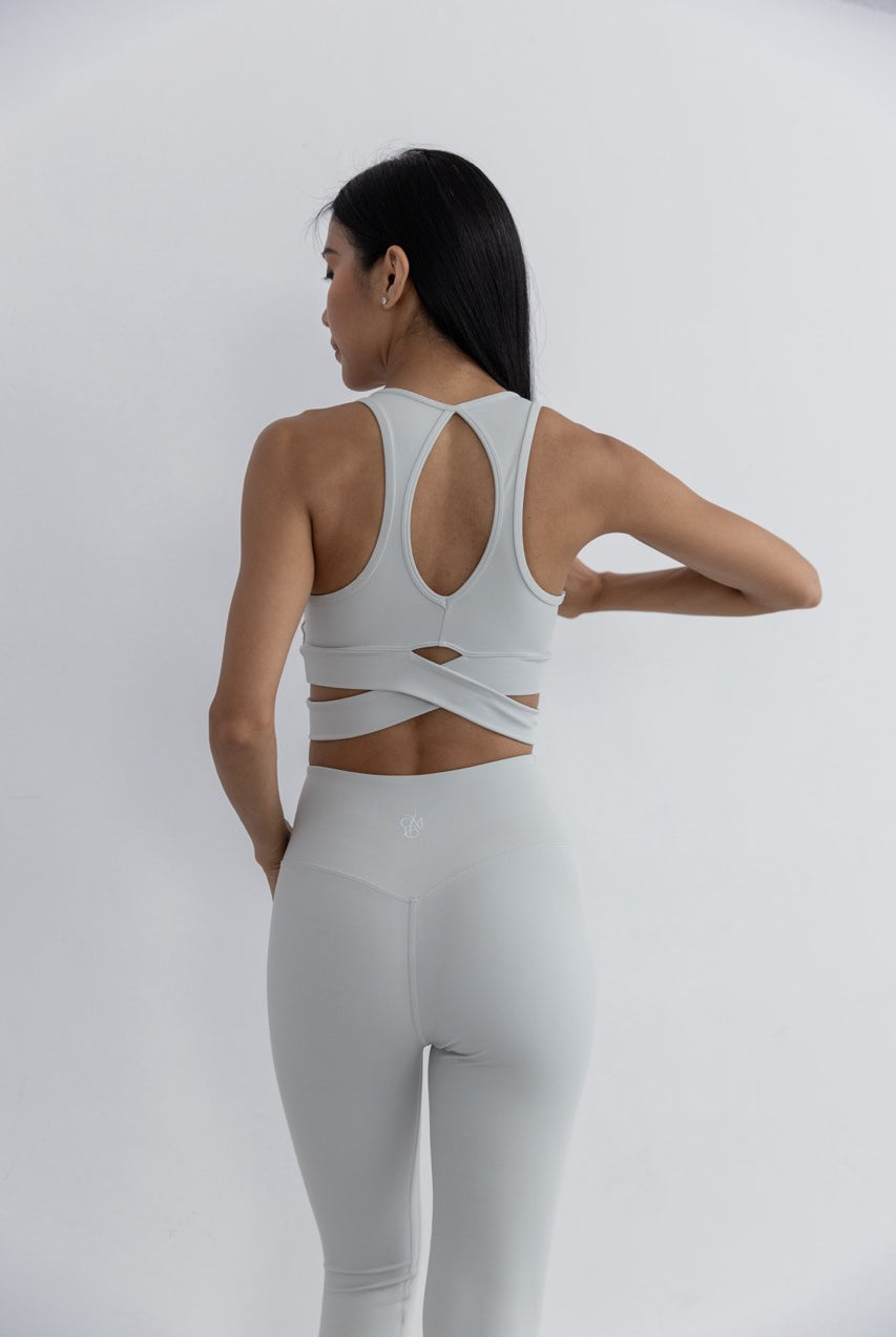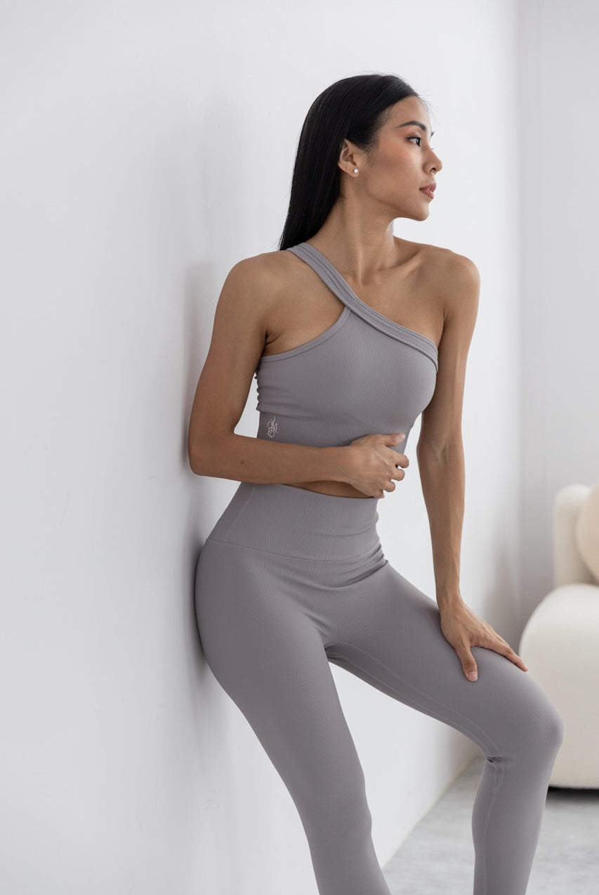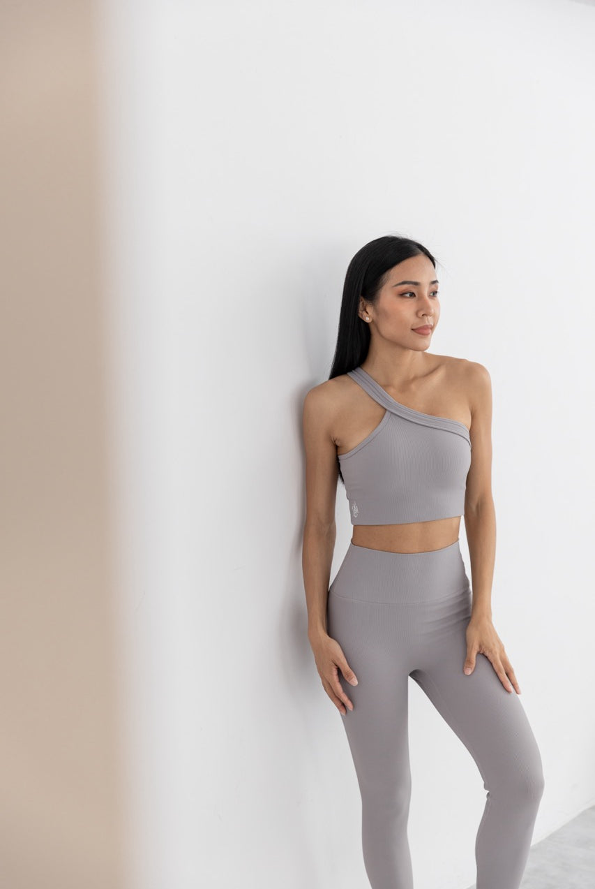 RibbedLuxe|Scoop Neck Sports Bra One Shoulder Crop Tops|Ultimate Gray