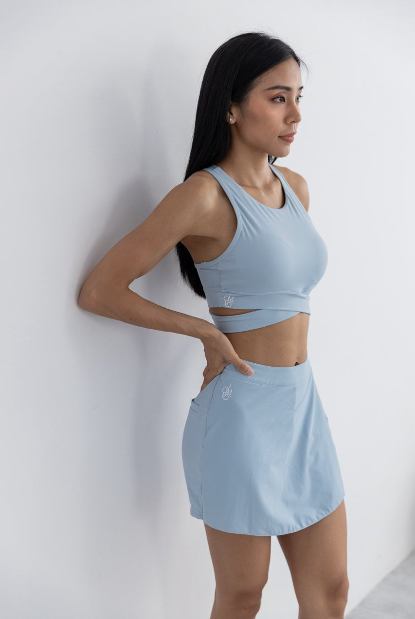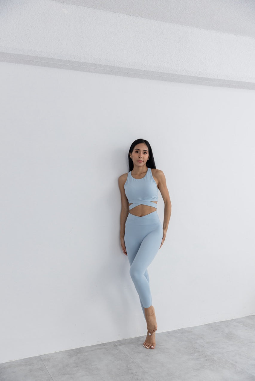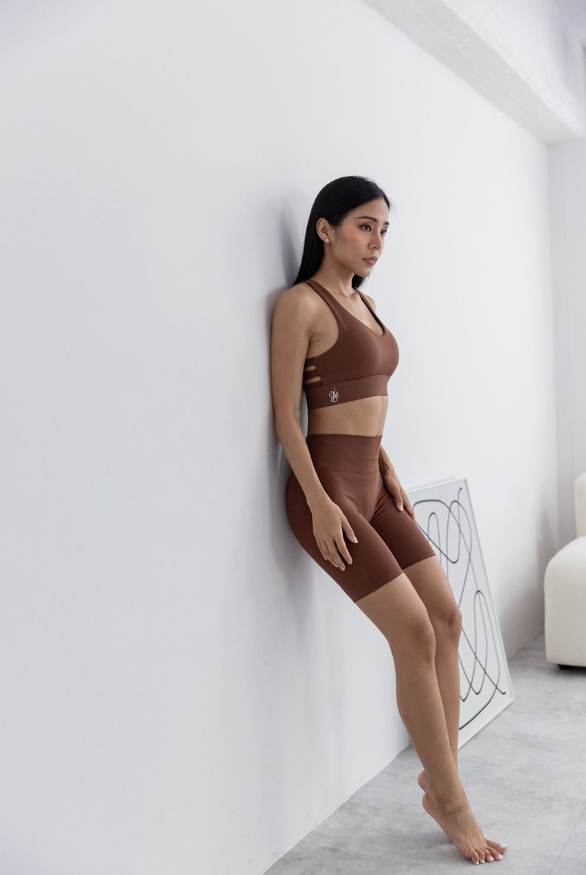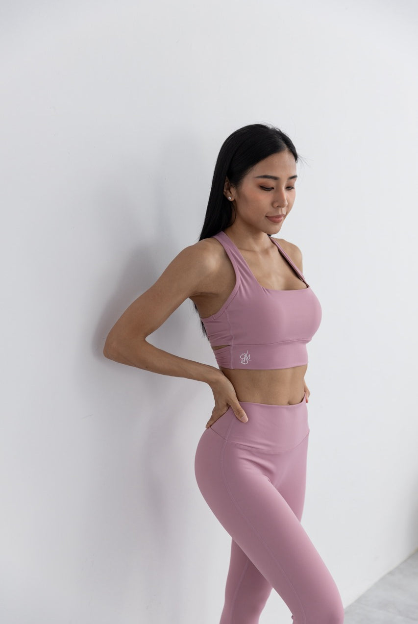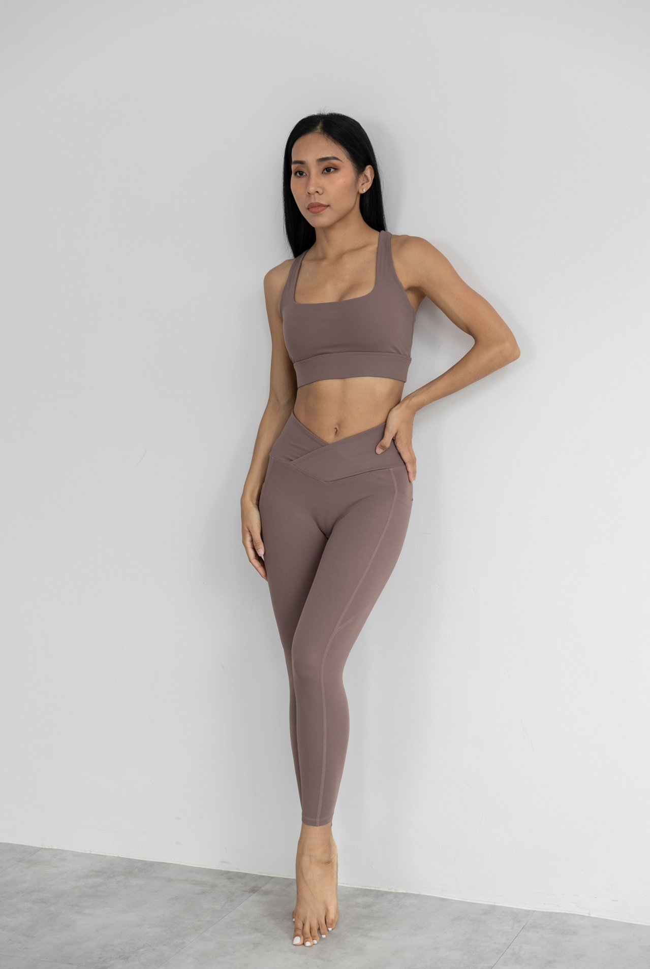 RibbedLuxe|Scoop Neck Sports Bra One Shoulder Crop Tops|Ultimate Gray
