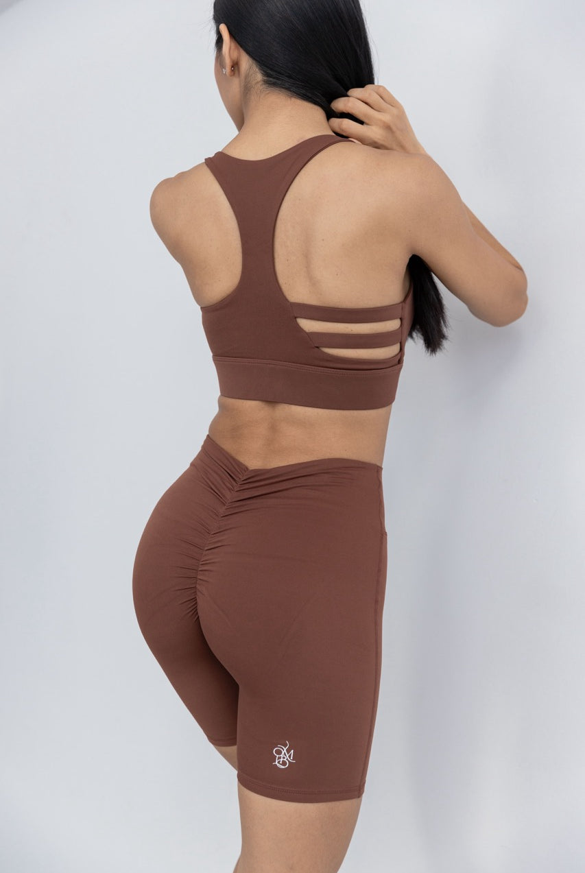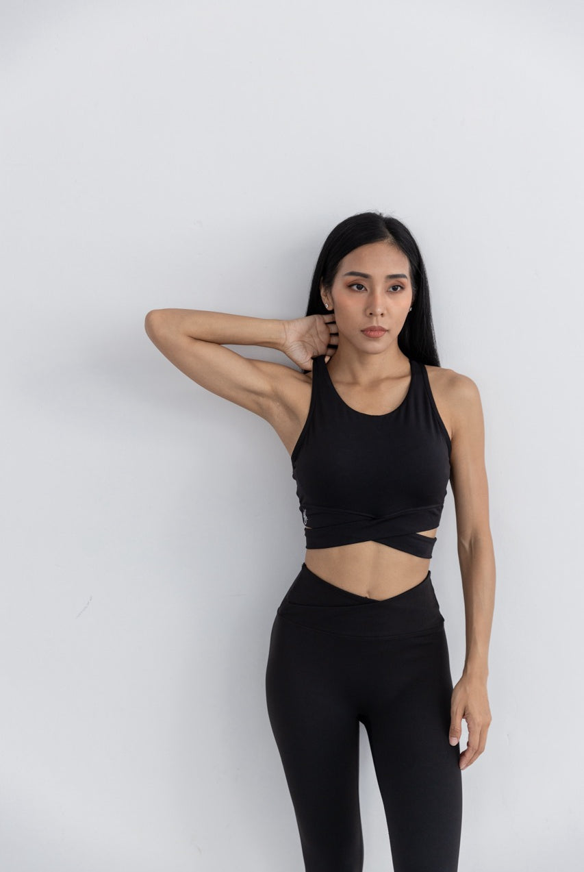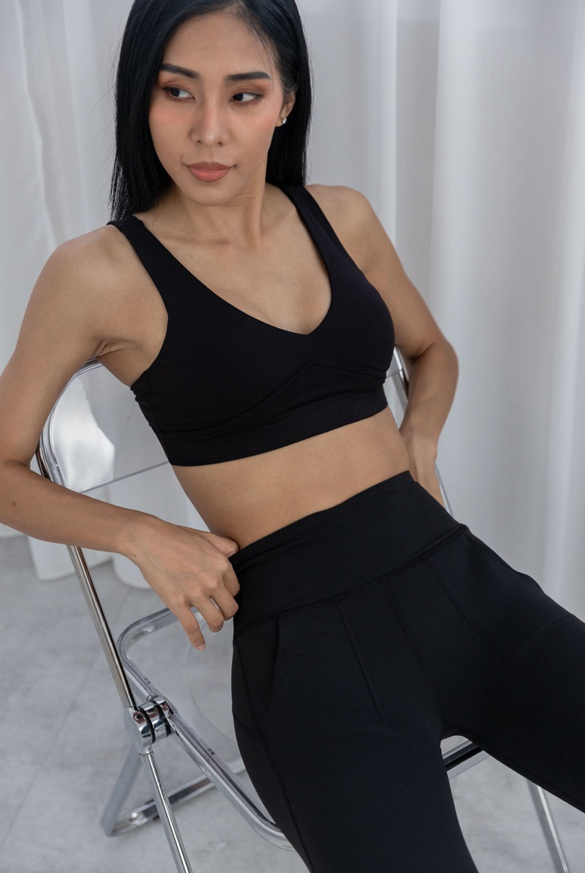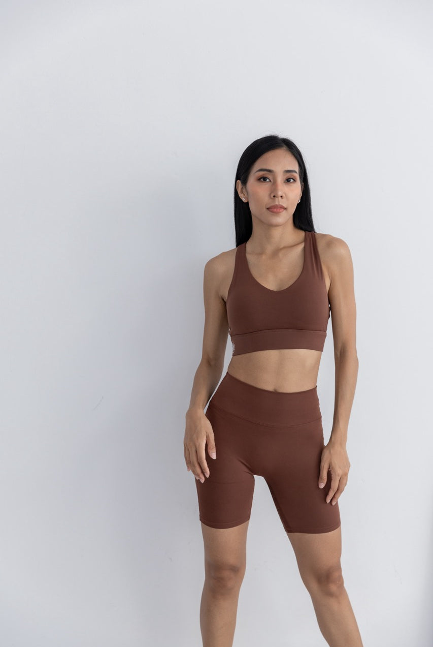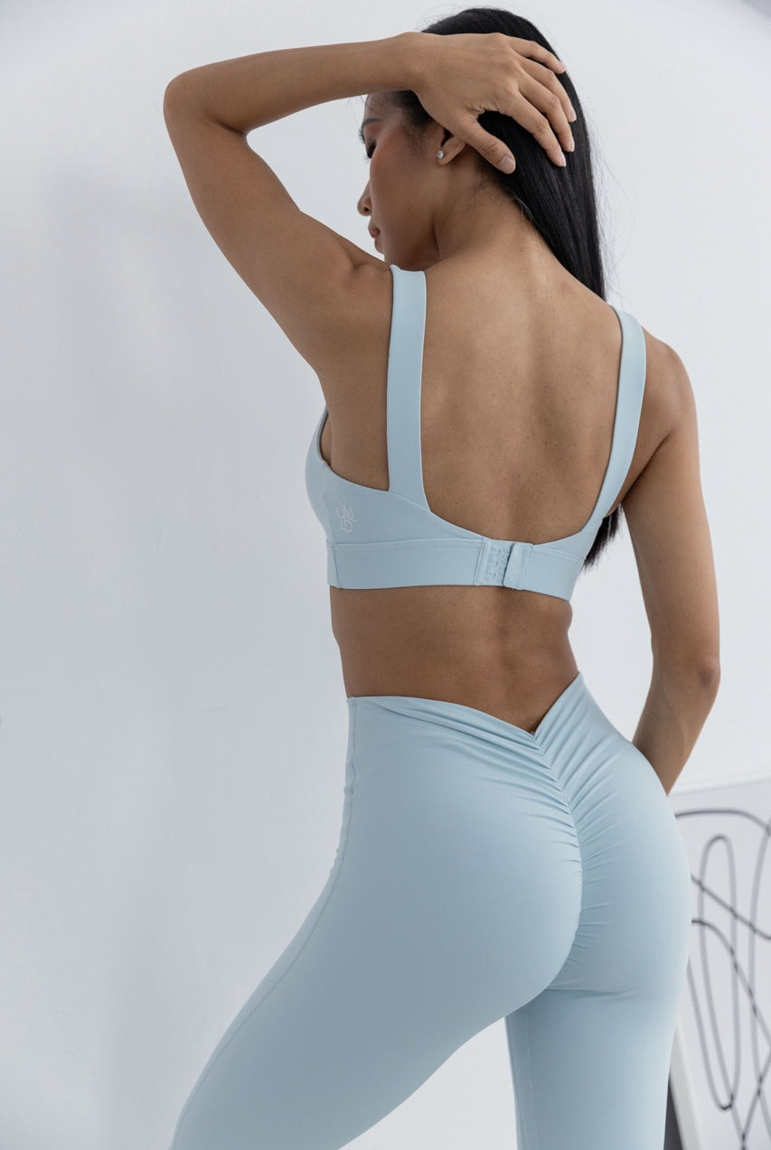 RibbedLuxe|Scoop Neck Sports Bra One Shoulder Crop Tops|Ultimate Gray