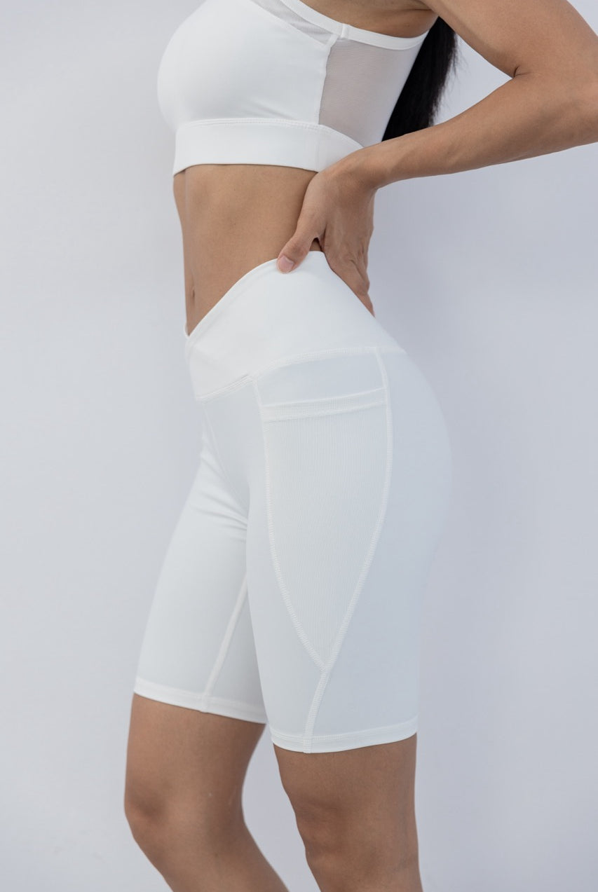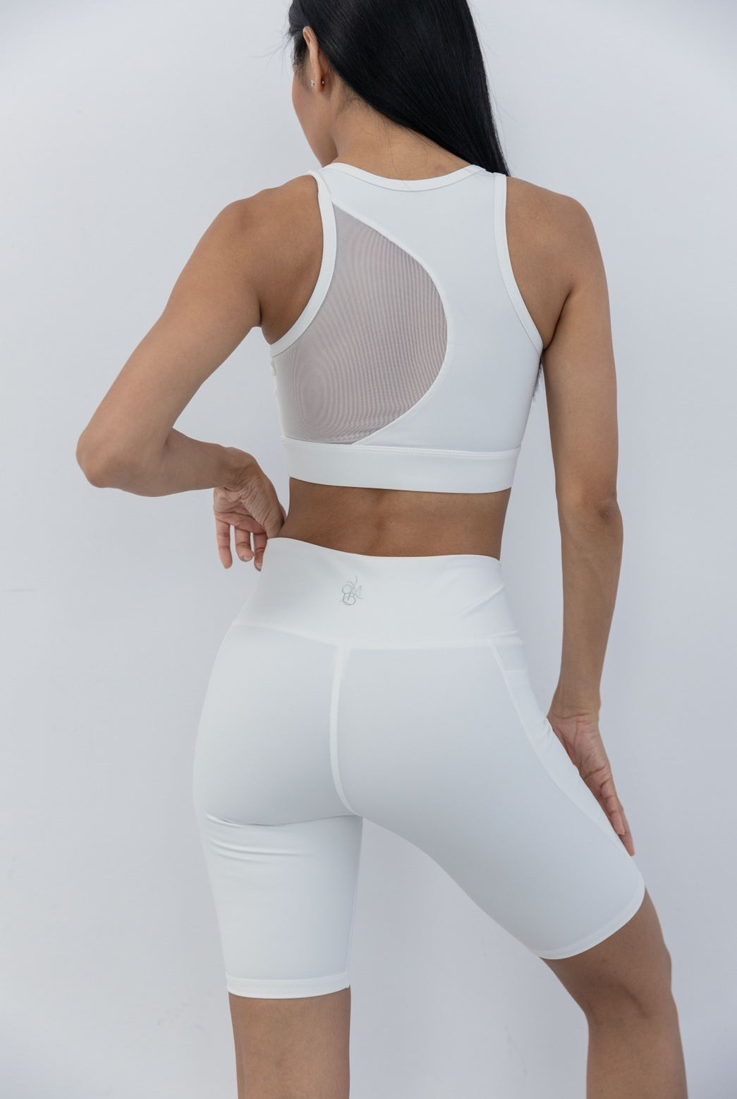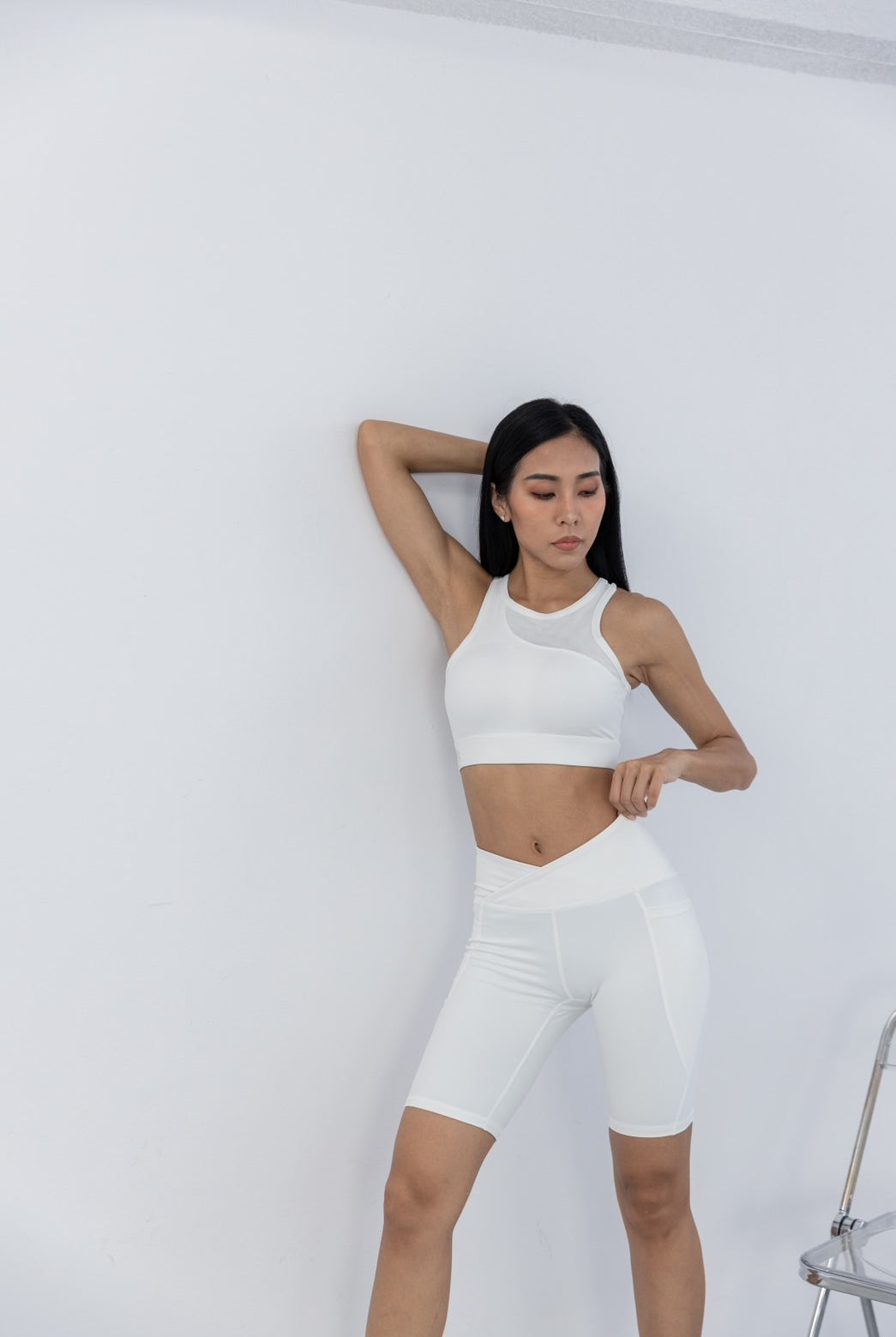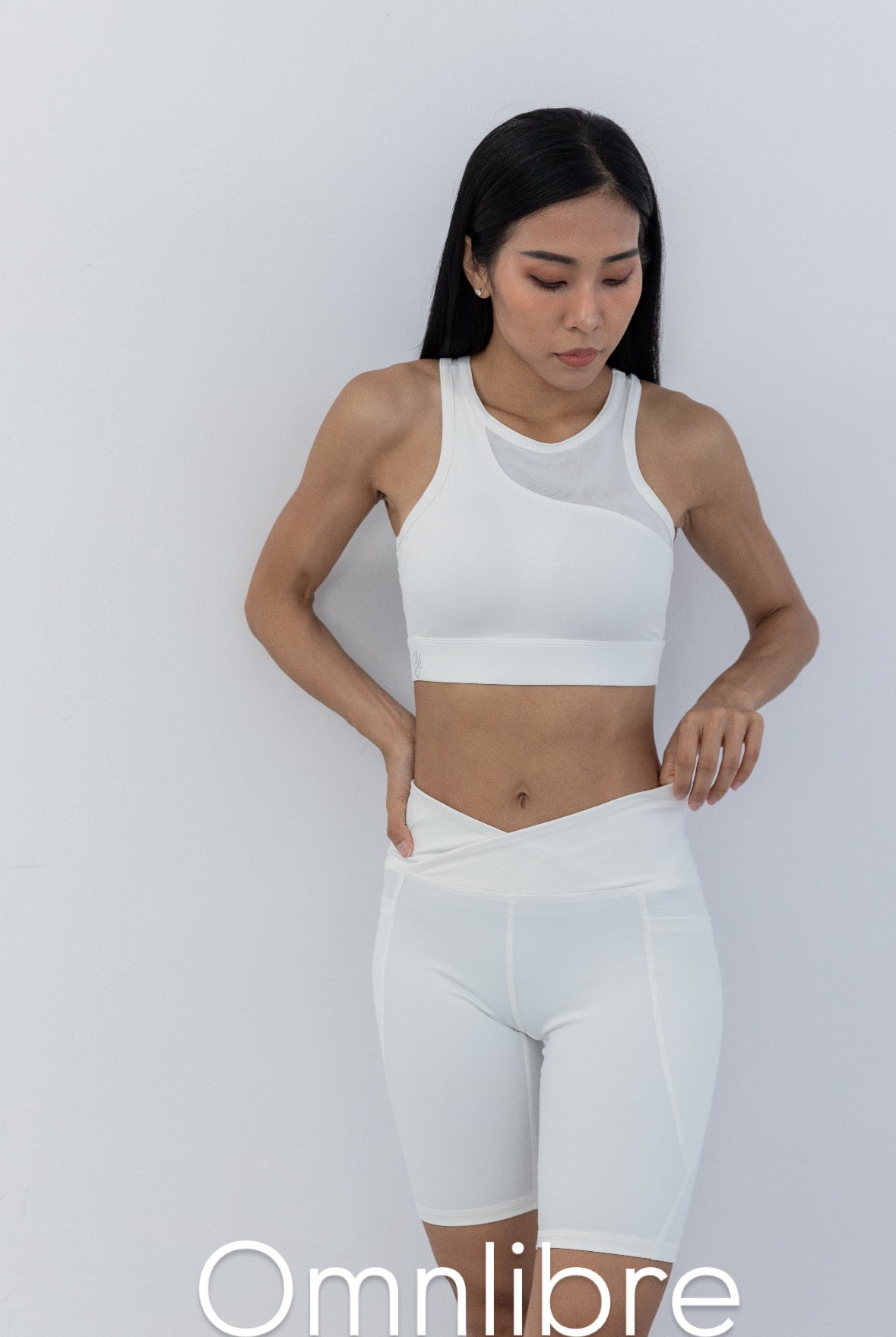 RibbedLuxe|Scoop Neck Sports Bra One Shoulder Crop Tops White