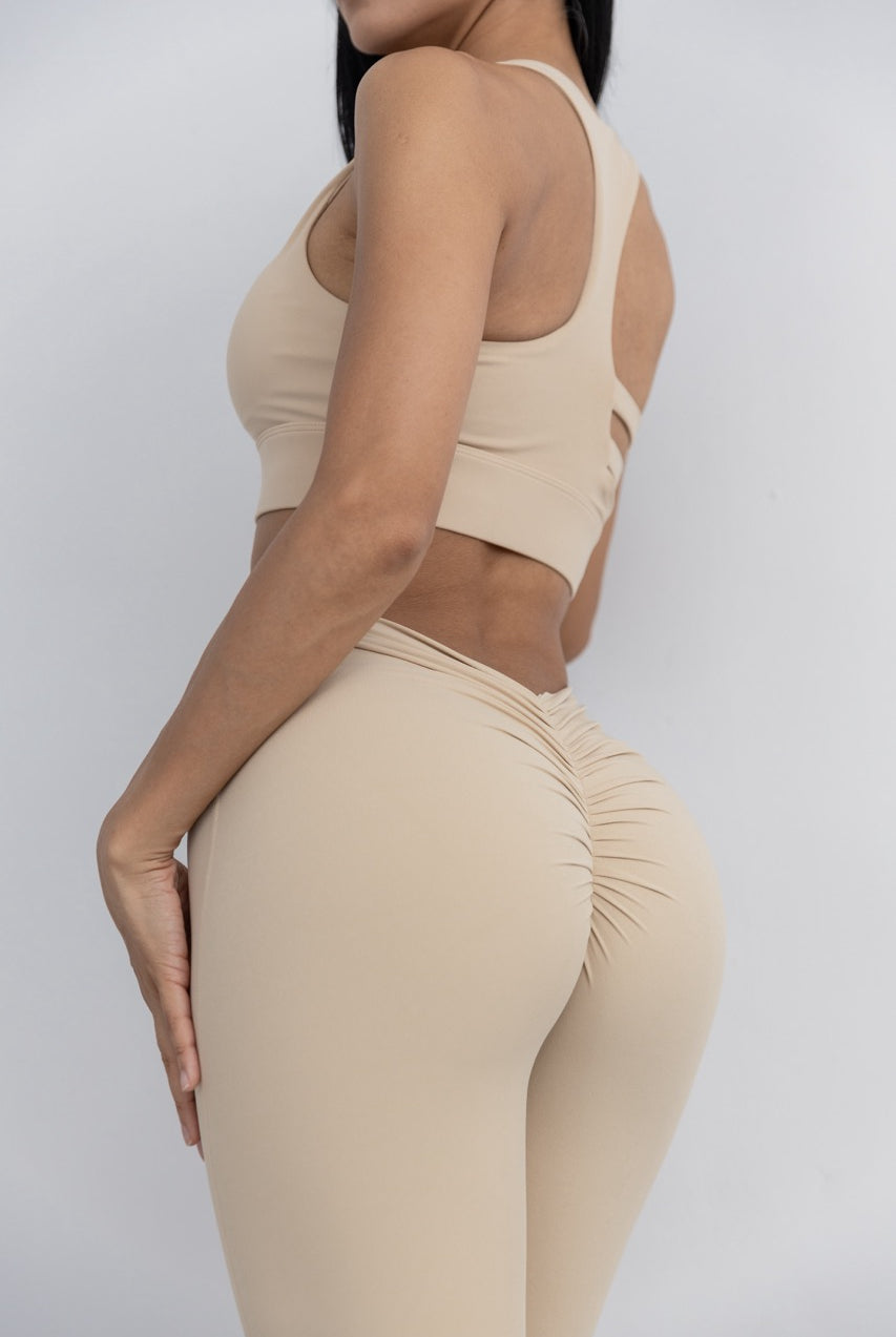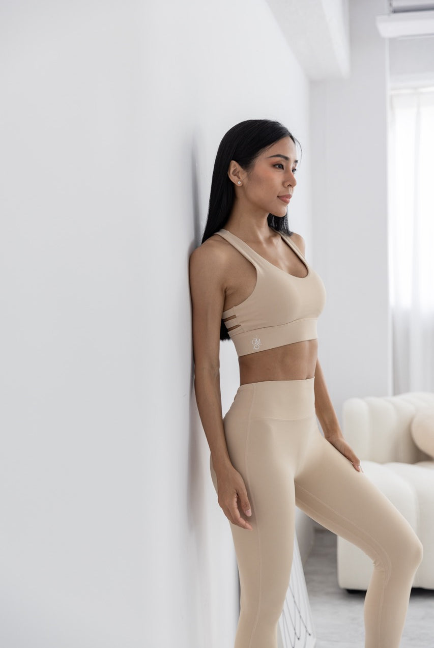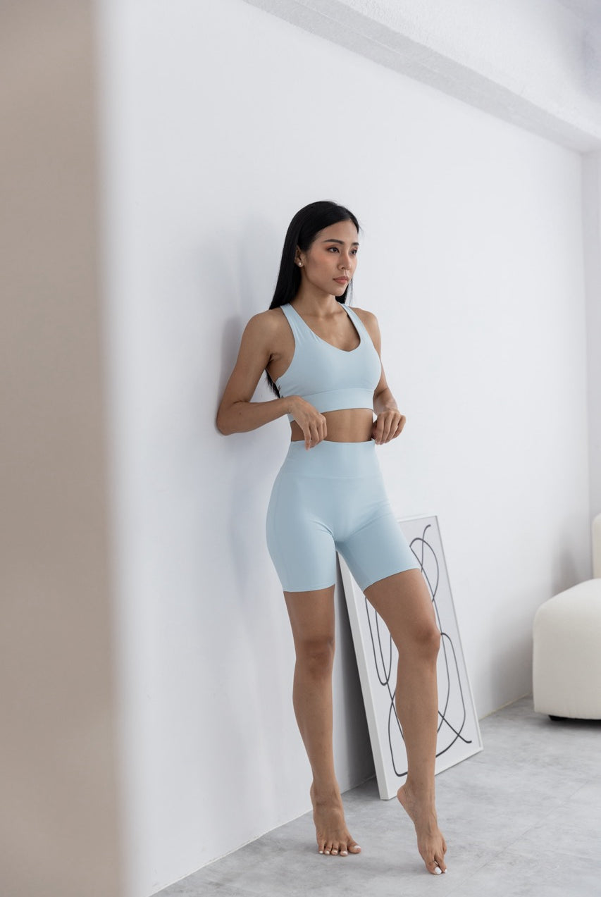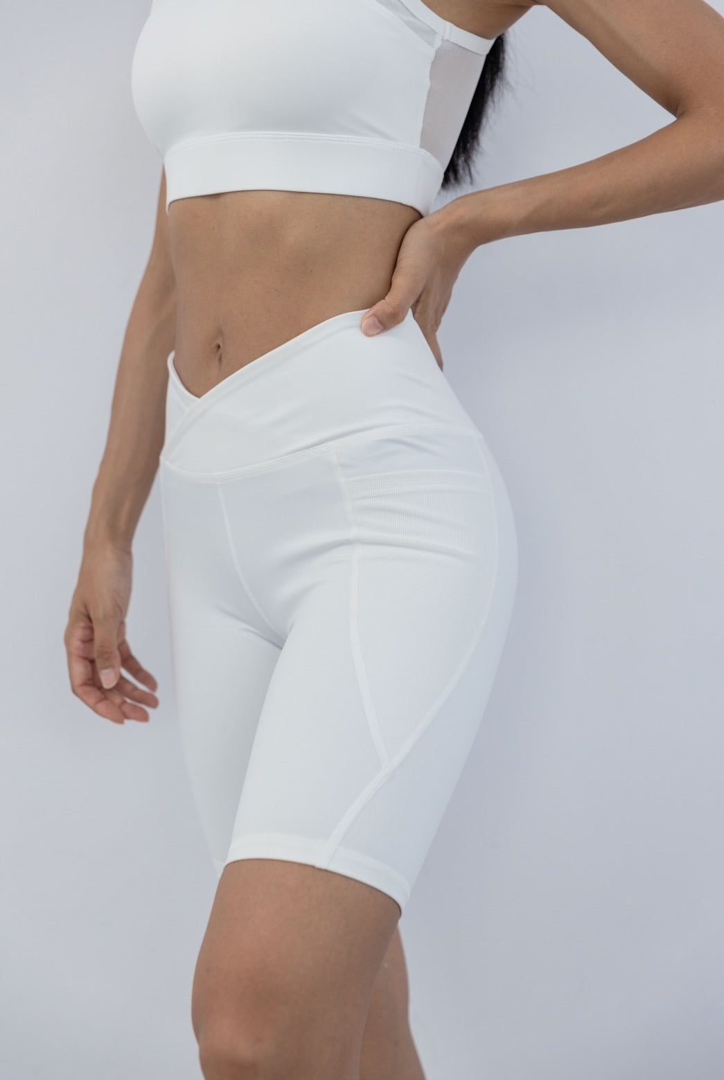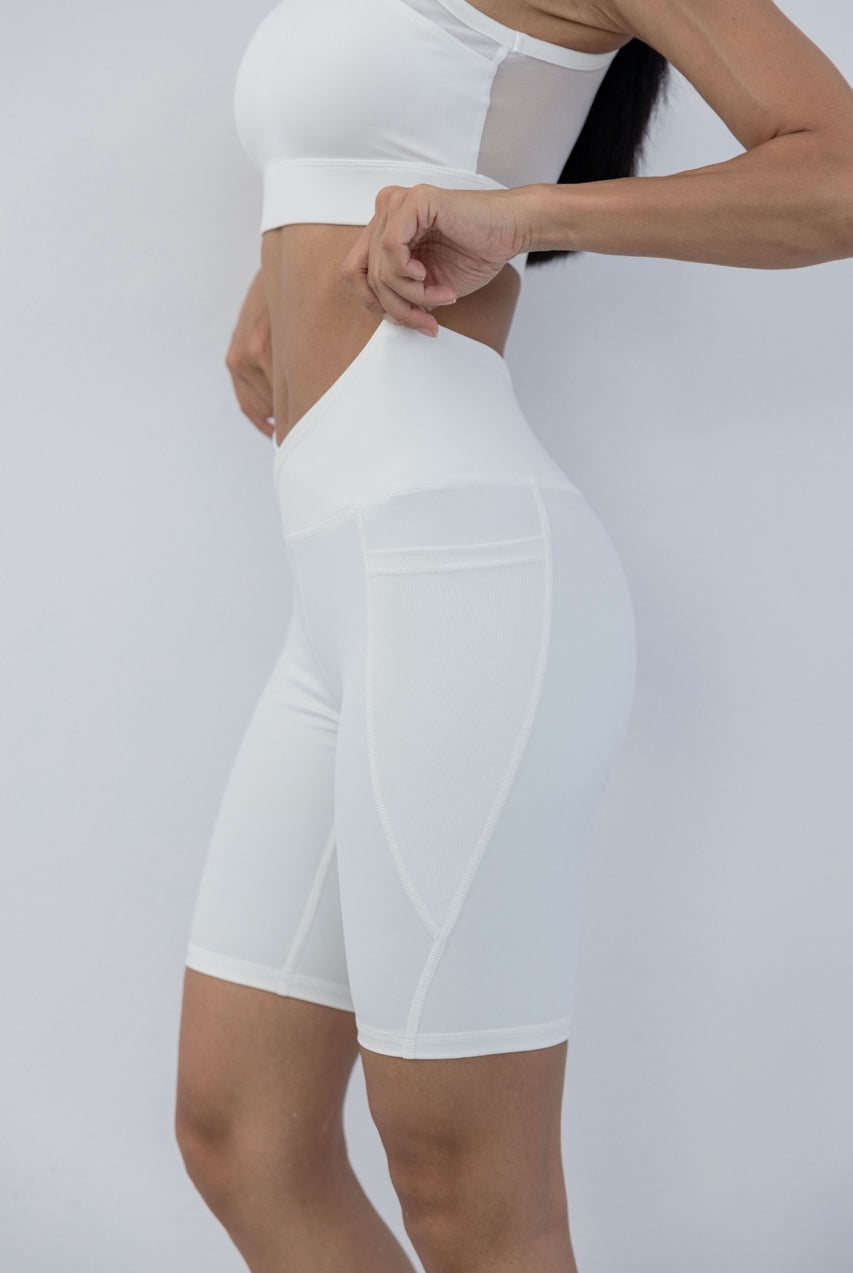RibbedLuxe|Scoop Neck Sports Bra One Shoulder Crop Tops White